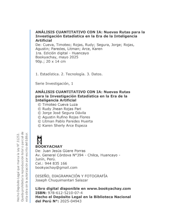 En un mundo donde los datos se han transformado en el nuevo lenguaje de la realidad, el análisis cuantitativo emerge como brújula indispensable para descifrar los patrones que rigen la complejidad contemporánea. Sin embargo, este lenguaje ya no se escribe únicamente con fórmulas tradicionales ni con las herramientas estadísticas de antaño. Nos encontramos en el umbral de una revolución cognitiva, donde la inteligencia artificial, lejos de reemplazar al pensamiento humano, lo potencia, lo reta y lo lleva a nuevas fronteras. Este libro, Análisis Cuantitativo con IA: Nuevas Rutas para la Investigación Estadística en la Era de la Inteligencia Artificial, es una obra que no solo recoge este espíritu transformador, sino que lo convierte en una hoja de ruta para quienes desean investigar con rigor en tiempos de algoritmos y automatización.