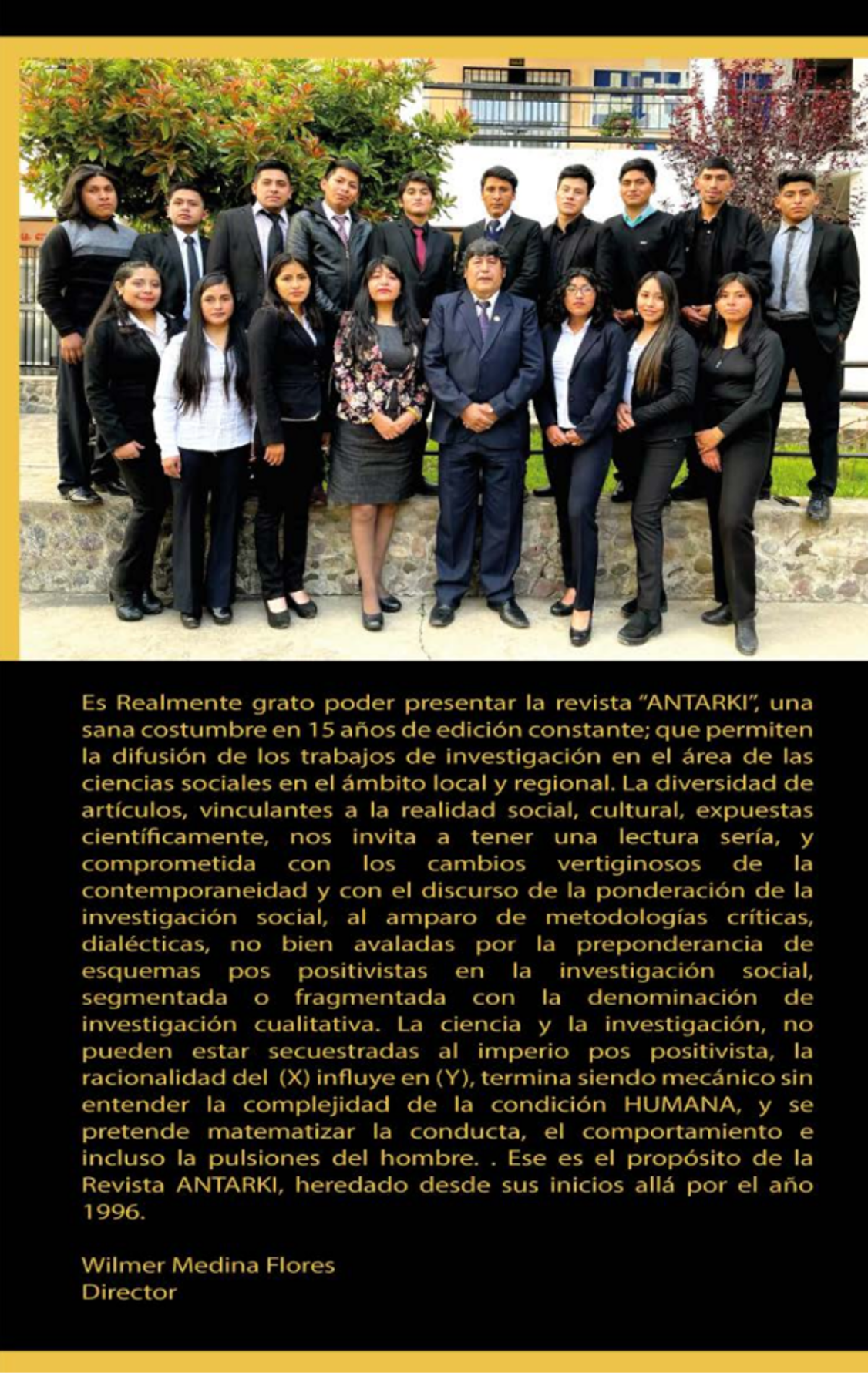 Presentar un nuevo número de ANTARKI es reafirmar una tradición académica que entiende la investigación social como una tarea ética: mirar el presente sin ingenuidad, leer la cultura con rigor y discutir los problemas colectivos con valentía intelectual. En tiempos de cambios acelerados, la revista convoca a recuperar el sentido humano del conocimiento, evitando reduccionismos mecánicos y abriendo espacio a enfoques críticos, dialécticos y reflexivos. En esa apuesta, ANTARKI se proyecta como un lugar de diálogo, donde las ciencias sociales no solo describen la realidad, sino que la interpretan y proponen rutas para comprenderla y transformarla